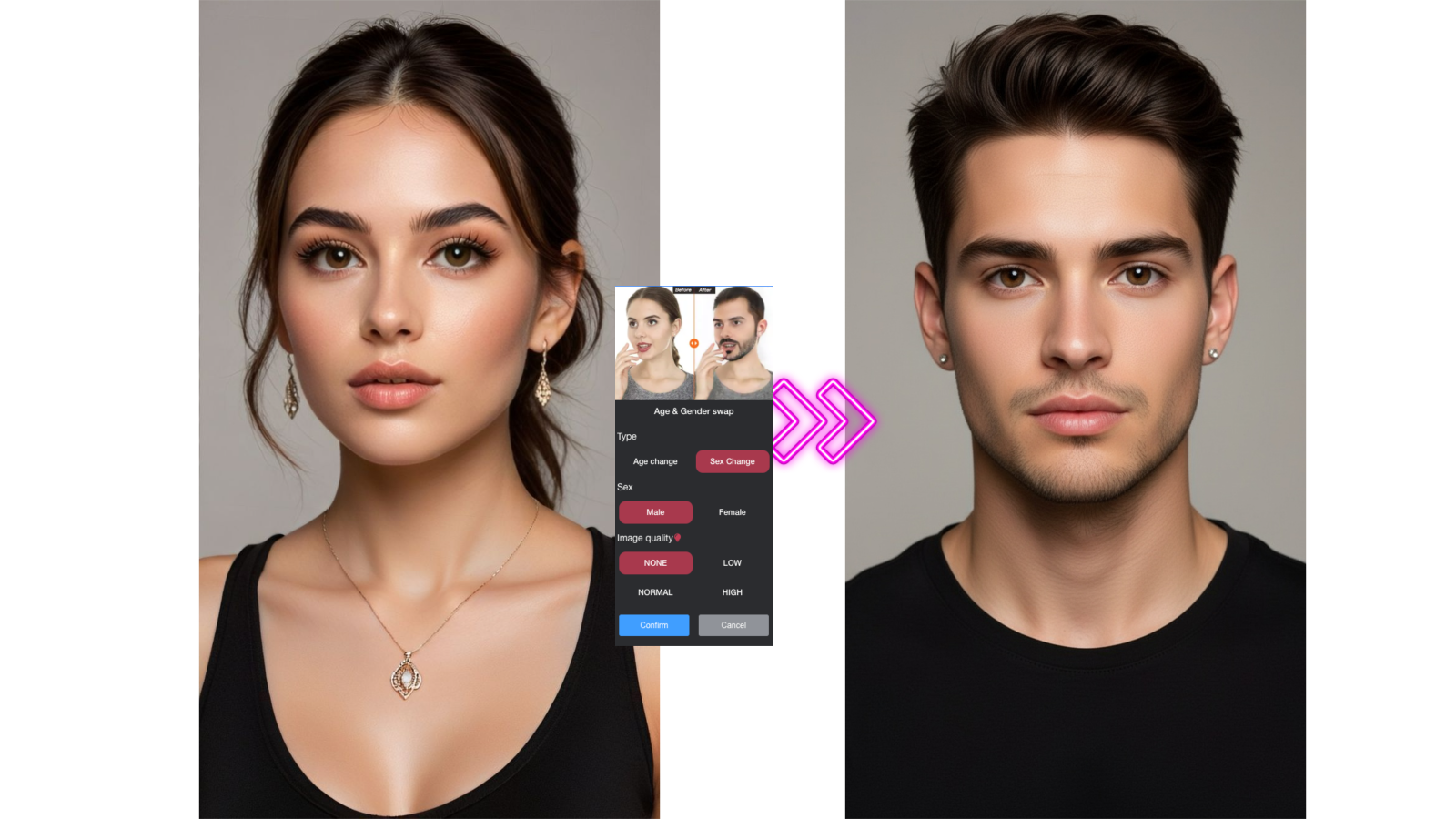 Gender swap: Seamlessly switch from male to female and vice versa