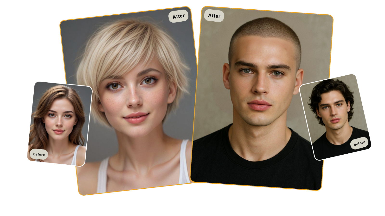 现在你可以先试再决定!只需上传一张清晰正面的照片,TryOnHairstyle 就能帮你预览几十种发型和颜色,像素级贴合你的脸型、五官和光线,让你在剪之前先看到效果。